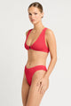 Stay stylish and sustainable with the Clasp Scout Crop by BondEye! With a classic scoop neckline and wide shoulder straps, this top offers medium to full support for A-DD cups. The low scooped back and front clasp detail add a playful touch to this nectarine-colored, recycled piece.