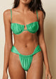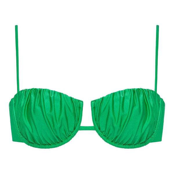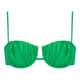 Get ready to shine in Montce's Emerald Shimmer Petal Bikini Top! With underwire and demi cup for moderate bust support, adjustable straps, and back hook closure, this top is perfect for all-day comfort and style. Its petal top base and keyhole cut-out in the center add playful details to this already stunning top!