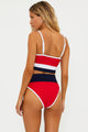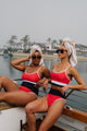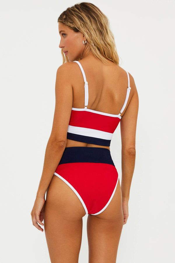Get ready to go from the beach to the gym and everywhere in between with the Beach Riot Eva Top! This versatile top is made with ultra-soft luxe ribbed fabric and boasts cool color blocking, adjustable straps, and gold hardware. Plus, the thick band under the bust provides extra support. Don't miss out on the bold red and navy colors with white lining in the Americana Colorblock combo. Complete the look with the matching Emmy Bottoms.