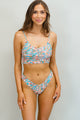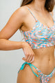 The Evelyn Crop Top in Amanda Talley Print by Ophelia Love is your cute but sporty look! It features extra support, removable pads, adjustable straps, and a cute detail on the back. Wear this as a swim top or a sports bra. Pair it with any Amanda Talley print bottoms and the ruffle skirt in seafoam.