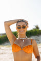 Meet the Marcela Underwire Top in Papaya by Ophelia Love! With adjustable straps and a customizable tie-back closure, this top ensures a perfect fit every time. Elevate your beach look with its fun and functional design, ideal for soaking up the sun in style.