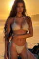 The Nick Skimpy Triangle Bikini Top in Spring Dreaming by Frankies Bikinis brings a fresh twist to a classic favorite with its new thermal swim fabric. Featuring adjustable string ties that wrap around your neck and back, it offers a custom, flattering fit every time. Perfect for sunny days, this playful bikini top keeps you comfy while you soak up the fun.