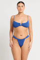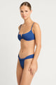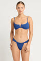 Introducing the Nora Balconette Lake Recycled by BondEye, featuring a classic balconette cup for a flattering fit. The front V hardware adds a touch of elegance while the flexible underwire feature provides maximum comfort. With adjustable bind straps, this bra is perfect for everyday wear.
