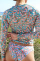 Check out our own Ophelia Love Rashguard in Amanda Talley's playful abstract print! This top is perfect for the surfer girls, or for a cooler day on the beach. Protect your skin from the sun while staying stylish with this unique design.