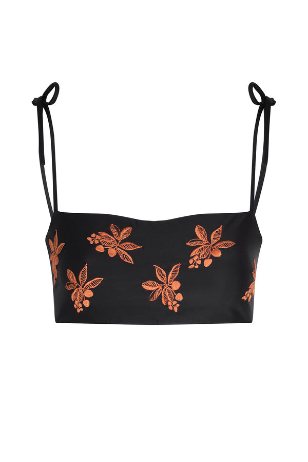 Elevate your poolside appearance with the San Miguel embroidered top by Colombian swimwear designer Juan De Dios. This flattering bikini top features dainty shoulder straps and a detachable closure at the center bust. The intricate embroidery of this bikini top is sure to turn heads on your next beach vacation.