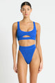 Featuring a flattering scoop cut and unique underbust cut outs, the Sasha Crop by Australian swim designer Bond-Eye provides full support with a wide underbust band and straps. Made from recycled materials for an eco-friendly twist.
