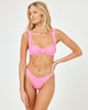 The Stella Bikini Top by LSpace is an underwire bralette style featuring extra-thick straps and a 3 point hook in the back. The demi cup top style has ruched cups that provide for a feminine flair. Offered in Guava