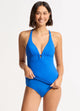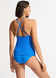 The Seafolly Collective Trim Front Tankini Top in Azure by Seafolly has a marble look detail to elevate the design. This tankini features all the fit and support you need with removable cups and adjustable straps.