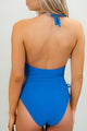 The Alejandra One Piece in Indigo by Ophelia Love is a suit looks amazing on a lot of body types. There are two adjustable side cutouts to either cinch and have that high leg look or barely cinch and a lower leg for more coverage. It features removable pads, v neck, and a tie around the neck.