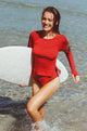Playfully designed, the mid-rise Belle Bikini Bottom in red by Watskin offers medium back coverage and flattering high-cut hips that elongate your legs. This classic piece suits all shapes and pairs effortlessly with our Sasha tee in red for a fun, chic swim look that turns heads at the beach or pool.