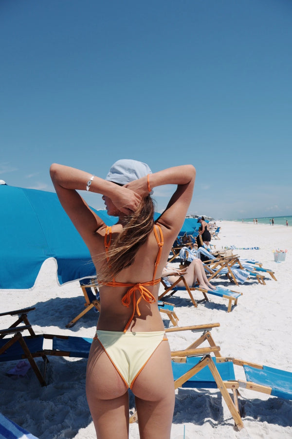 Meet the Double Strap reversible Bottom in Papaya by Ophelia Love! This moderate coverage bottom offers both comfort and confidence, while the fun two straps add a touch of personality to the classic design. Available in a gorgeous papaya color that's perfect for summer, the Double Strap Bottom is a must-have for any beach lover. Don't miss out - shop yours today!