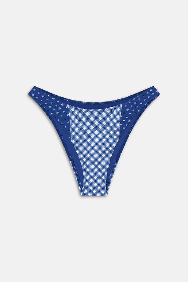 Every day feels like a sunny escape with the Dove Bikini Bottom in Starry Gingham by Frankies Bikinis. Its low-rise fit and high-leg silhouette flatter your figure while offering classic coverage. Crafted from our signature soft swim fabric, this playful print adds a fresh twist to your beach look. Effortless style meets comfort for your next seaside adventure.