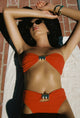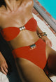 Get ready to show off your legs with the Kate Pinch Hardware Bottom in Tangerine Tango! With a french cut design and fixed bottom by La Porte, you'll have the longest legs ever. Plus, the perfect detailing adds a touch of elegance. Go ahead, try it out and see for yourself!