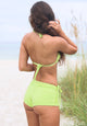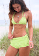 The Lydia Short in Lemon Lime Gingham is a playful and versatile piece made from the same smooth swimwear fabric as its matching bikini. Its cheerful green and yellow gingham pattern adds a fresh pop of color, perfect for layering over your bikini or wearing solo as a lightweight bottom. Style it with sandals and a tank for effortless, sunny vibes wherever you go.