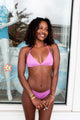 The Lyra Top Ultra Violet by Cali Dreaming brings a playful twist to the classic string bikini with its vibrant hue and sleek neoprene fabric. Designed to hug your curves like a second skin, it molds perfectly when wet, ensuring comfort and style that moves with you. Dive into summer with confidence and a splash of bold color!