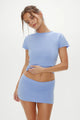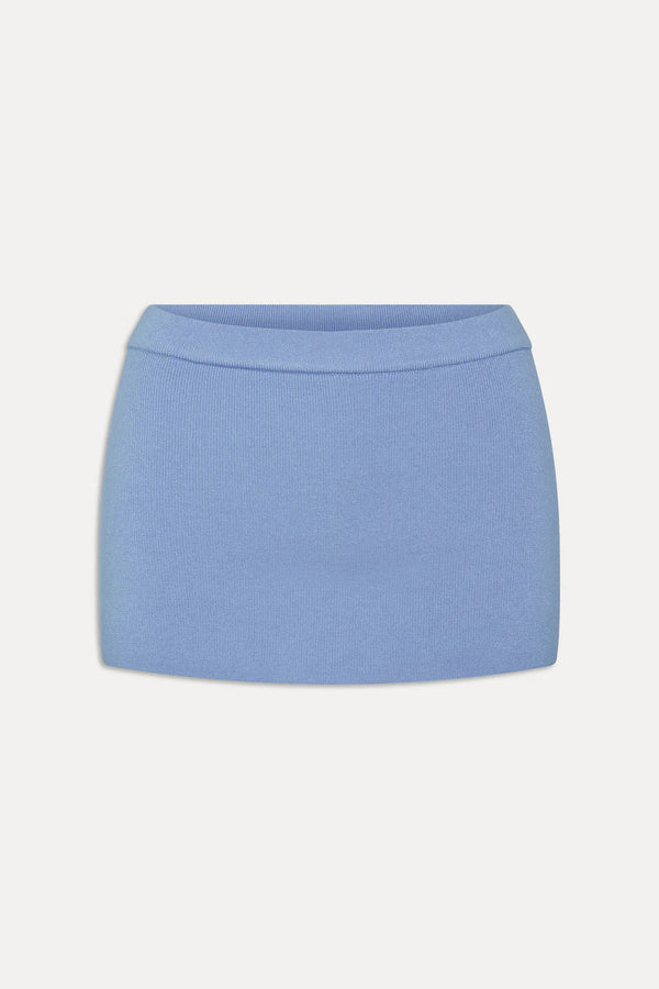 Elevate your summer style with the Marialla Knit Mini Skort in Heaven Blue by Frankies Bikinis. Featuring a playful mini skirt top layer and built-in shorts, it offers both flirty flair and comfortable coverage. Crafted from our signature Cloud Knit fabric, this piece delights with a soft ribbed feel that moves with you. Perfect for sunny days when you want to look cute and feel carefree.