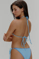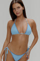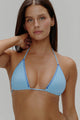 The Nick Skimpy Triangle Bikini Top in Blue Vanilla by Frankies Bikinis brings classic cone vibes to your swimwear collection. With adjustable string ties, it offers a perfect, personalized fit while the soft sculpt rib fabric feels as good as it looks. This halter style delivers just the right amount of skimpy coverage for endless summer fun.