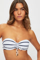The Ruched Bandeau Top in Nautical Stripe by Heidi Klein is designed to lift and enhance your bust with invisible underwiring, foam cups, and side boning for a perfect fit. Playful decorative ruching flatters your neckline, while cute ties with gold cube accents add charm. Enjoy versatile wear with removable, adjustable straps and a secure bikini clasp closure in the back—ready for all your sunny adventures!