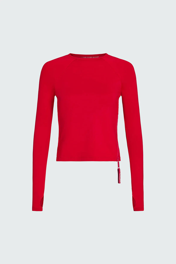 The Sasha Tee in bold Red is your new favorite rashguard for every move. Made from stretchy, moisture-wicking fabric with UPF 50+ sun protection, it fits snug and hits right at the waist with a fun side zipper twist.