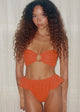 Introducing the Tangerine Tori Ties Bandeau Bikini Top - a playful twist on the classic bandeau silhouette by Montce. Removable tie-up straps provide support while adding style to this medium support top. Side-seam boning and an adjustable self-tie back closure ensure maximum comfort. Flattering sweetheart neckline and ruched detailing complete the fun and flirty look.