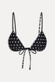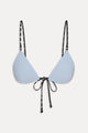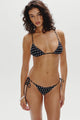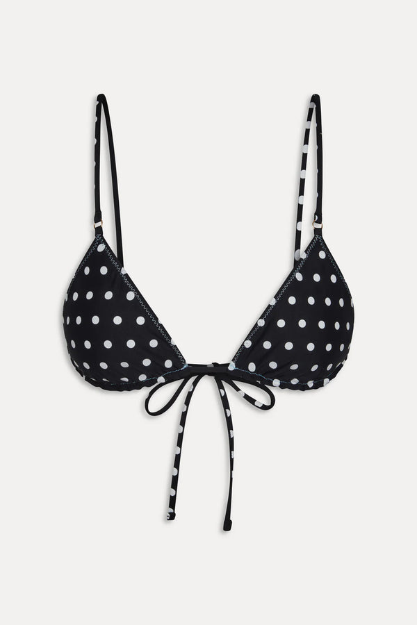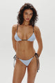 The Elena Reversible Micro Bikini Top by Frankies Bikinis is your ultimate flip-it-and-switch-it essential. Rock the playful polka dot side one day, then flip to cool frost blue the next—because commitment is overrated. This micro triangle top features cheeky back ties that let you customize the fit to perfection. Double the style, double the fun.