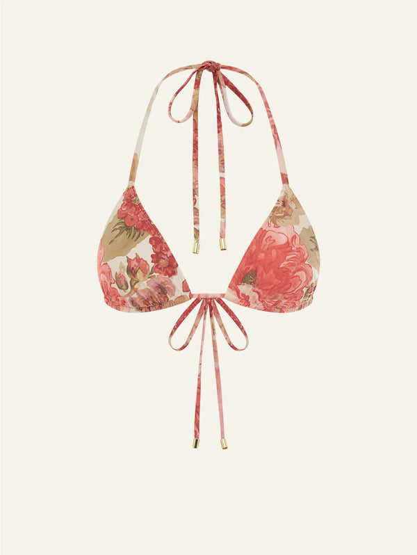 Dive into effortless elegance with the Essential String Tri in Dahlia by Peony. This playful bikini top features a flattering string style with soft, removable padding that lets you customize your coverage. Premium golden hardware adds a touch of luxury to every poolside moment. Whether you're lounging or making waves, this versatile piece keeps you feeling confident and fabulous all day long.