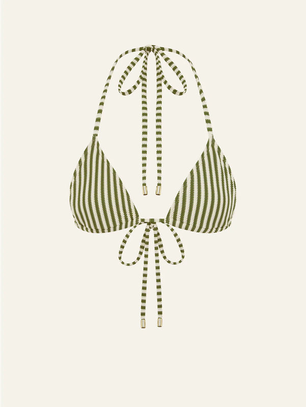 Dive into effortless style with this Essential String Tri by Peony in a gorgeous fern stripe pattern. This playful bikini top features soft, removable padding that lets you customize your coverage, paired with premium golden hardware that catches the light just right. Whether you're lounging poolside or making waves, this versatile piece delivers comfort and confidence in equal measure.