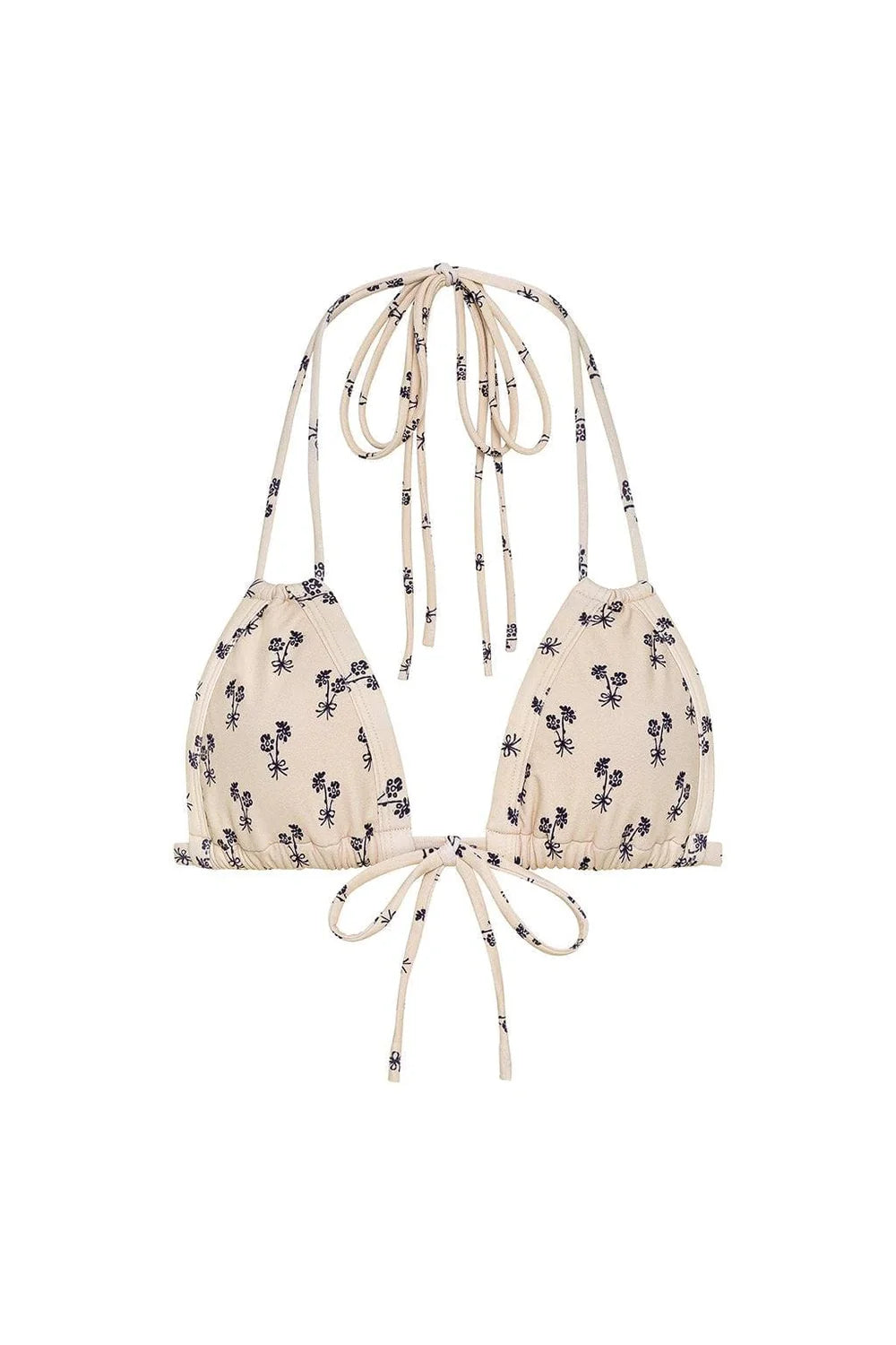 Make a splash with the Euro Bow Bikini Top in Cynthia Floral by Montce, where timeless style meets modern flair. This chic triangle top features double halter straps that offer secure, flattering support, while the removable bow detail lets you switch up your look whenever the mood strikes. Rock it with the bow for a flirty vibe or go sleek and minimal—the choice is yours.