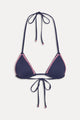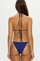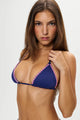 The Nick String Triangle Bikini Top in Midnight Bloom by Frankies Bikinis is your ticket to turning heads at the beach. This playful halter style features delicate floral bead detailing that catches the light beautifully, paired with a skimpy triangle cut for minimal coverage and maximum confidence. Ruched detailing adds dimension and flatters your silhouette, while adjustable ties at the neck and back ensure a custom fit.