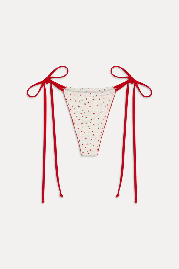 Dive into endless summer vibes with the Tidal Micro String Bikini Bottom in Tiny Berry by Frankies Bikinis. This charming strawberry-patterned bottom brings playful style to your swimwear collection, designed for those who want a touch of sweetness with their sun-soaked days. The micro string silhouette offers a flattering, minimal coverage look that's perfect for beach trips, poolside lounging, or vacation getaways.