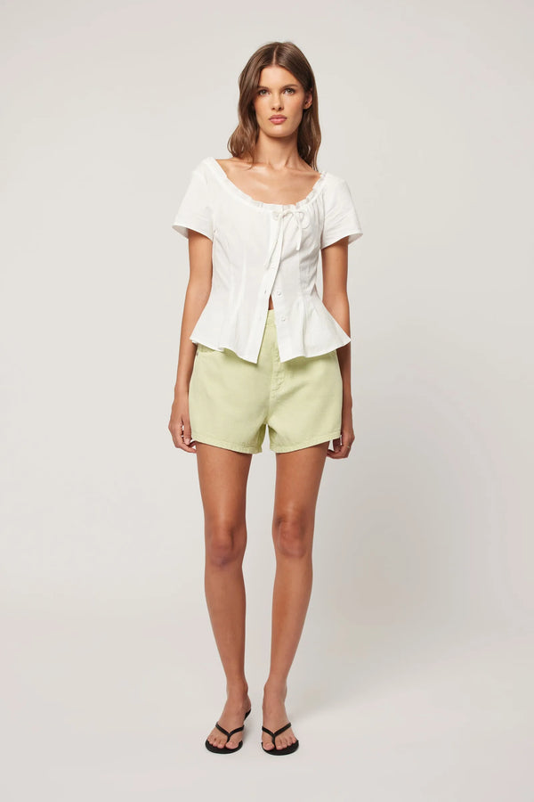 The Mirage Short Lyocell by Rolla's brings a playful twist to your summer wardrobe with its high-rise, relaxed cheeky fit. Crafted from super soft lyocell and cotton blend, these shorts drape luxuriously while being kinder to the planet. Featuring Rolla’s signature pockets, a finished hem, and a zip fly, they offer modest length with effortless style. The pistachio shade adds a fresh pop of seasonal color, perfect for sunny days and spontaneous adventures.