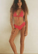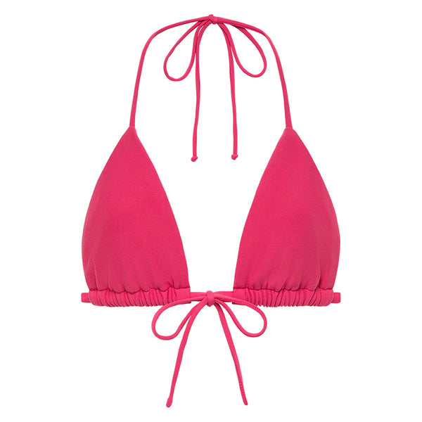 Get moderate support and maximum style with the Raspberry Emma Bikini Top by Montce. This adjustable top features ties at the neck and back for a customized fit, while the removable bow adds a touch of charm and can be worn in the center front or elsewhere. Perfect for a playful day at the beach!