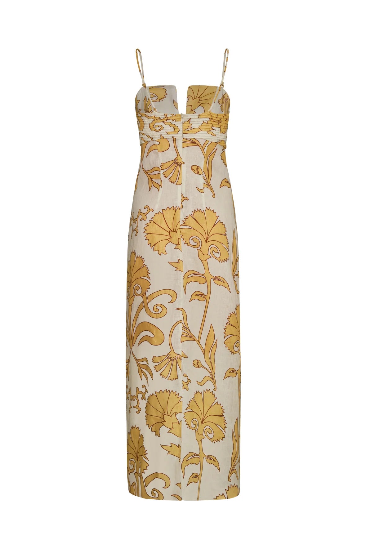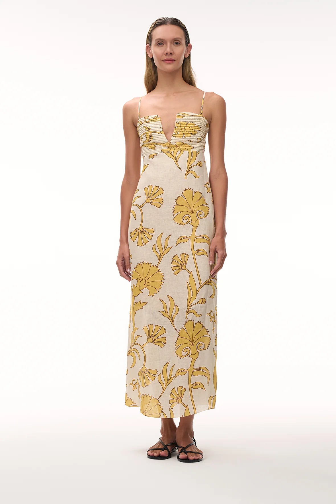 The Antigüa Linen Midi Dress by Juan De Dios features hand-pleated cups that sculpt beautifully, a fitted waist that celebrates your silhouette, and removable straps for maximum styling flexibility. Adorned with delicate floral embroidery in cheerful yellow blooms, this piece whispers romance while nodding to timeless heritage craftsmanship. Whether you're heading to brunch, a garden party, or a sunset stroll, this linen beauty keeps you cool, comfortable, and undeniably fabulous.