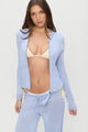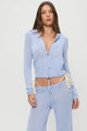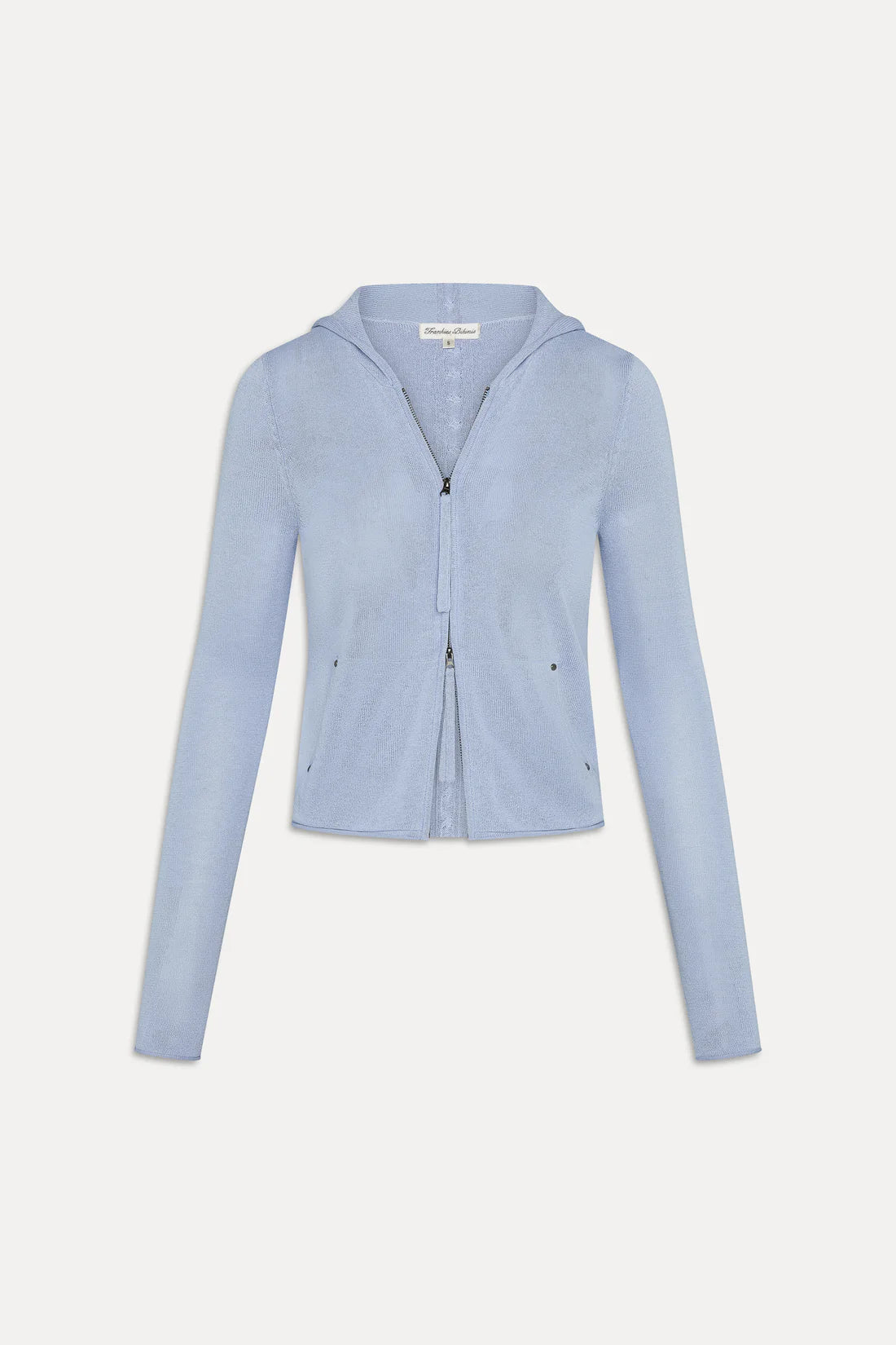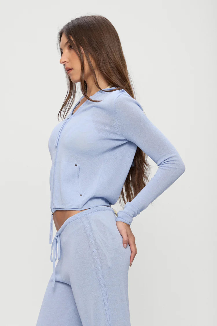 The Atlas Zip-Up Hoodie in Sleepy Spring by Frankies Bikinis combines comfort with effortless style. Crafted from our signature Beach Knit fabric—our softest fabrication yet—this hoodie features a snug fit with a slightly sheer quality for a modern aesthetic. The two-way zipper with extended pull tab offers versatile styling options, while front pockets add practical functionality. Rolled finishes on the hem and sleeve openings create a refined silhouette, complemented by subtle stud details and our iconic cable knit design running down the center back.