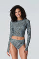 The mid-rise Belle Bikini Bottom in Blue Zebra by Watskin offers a playful yet timeless swim look. With medium back coverage and high-cut hips, it flatters every shape while elongating your legs. Pair it with the Clara tee in Blue Zebra for a chic and coordinated beach-ready style.