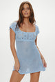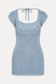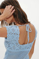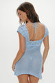 The Eloise Crochet Mini Dress in Soft Blue Jay is your new go-to for sunny days. Featuring delicate floral crochet details at the bust and sleeves, it fits snugly over the bust and flows loosely for a carefree vibe. The adjustable back tie lets you customize your fit, while the extra mini length adds a flirty touch. Perfect as a dress or a chic swim cover-up, it’s playful, breezy, and ready for any adventure.