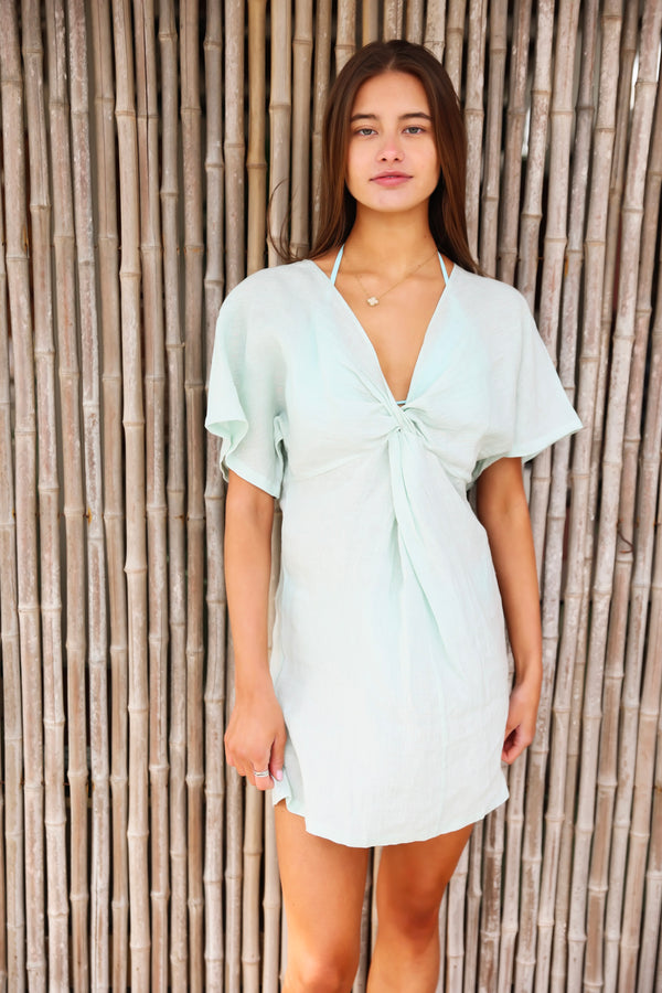 Knot Linen Dress Mini Mint