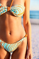 Introducing the Lala Wrap Side Bottom by Ophelia Love, a unique and stylish addition to your swimwear collection. These bottoms feature wrapped straps on the sides, perfectly matching the Coco Bandeau top for a coordinated look. With moderate to cheeky coverage and a design that elongates the legs, these bottoms are sure to make a statement by the water. Offered in Ophelia's signature print Seaside Palm.