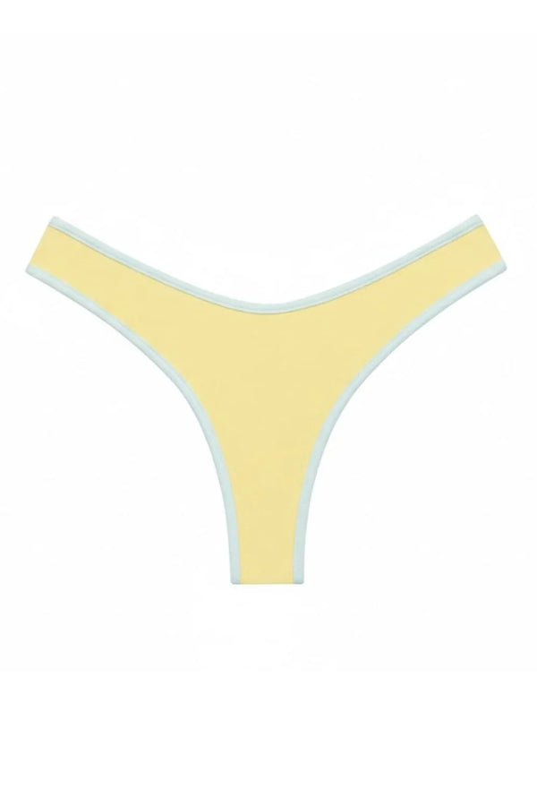 The Lulu Bikini Bottom by Montce in Sunshine yellow offers full coverage with a flattering mid-rise cut and high-leg design that creates an elongated silhouette. Perfect for those seeking comfort without compromising on style, this piece provides the coverage you want while maintaining a sleek, modern aesthetic. The thoughtfully designed cut works beautifully with any swim top, making it a versatile essential for your beach wardrobe.