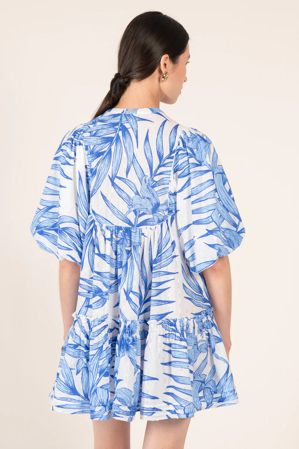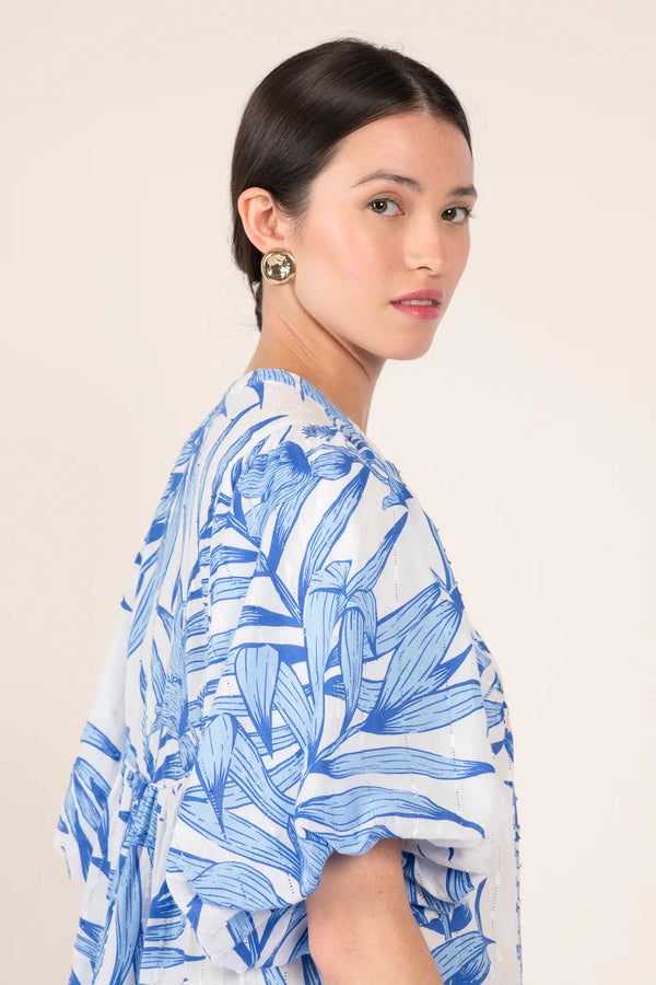 Mini Dress Cruz Blue Palm Leaf