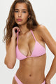 The Nick Skimpy Triangle Bikini Top in Blush by Frankies Bikinis is your new go-to for sunny days. Made with a fresh thermal swim fabric, it feels cool and comfy against your skin. Adjustable string ties let you wrap and tie it just the way you like, giving you a fun, flirty fit every time you wear it. Perfect for making waves with effortless style!