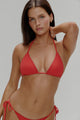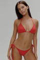 The Nick Skimpy Triangle Bikini Top Cherry by Frankies Bikinis brings classic vibes to your swimwear collection with a playful twist. This halter-style top offers just the right amount of skimpy coverage, crafted from soft sculpt rib fabric for a comfy, flattering fit. Adjustable string ties let you customize your look, making it a timeless favorite that never goes out of style.