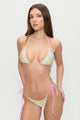 The Nick Triangle Halter Bikini Top in Nymphaea by Frankies Bikinis features adjustable string ties that wrap around your neck and back, allowing you to customize the fit to your body. The classic triangle silhouette offers timeless style and flattering coverage.