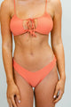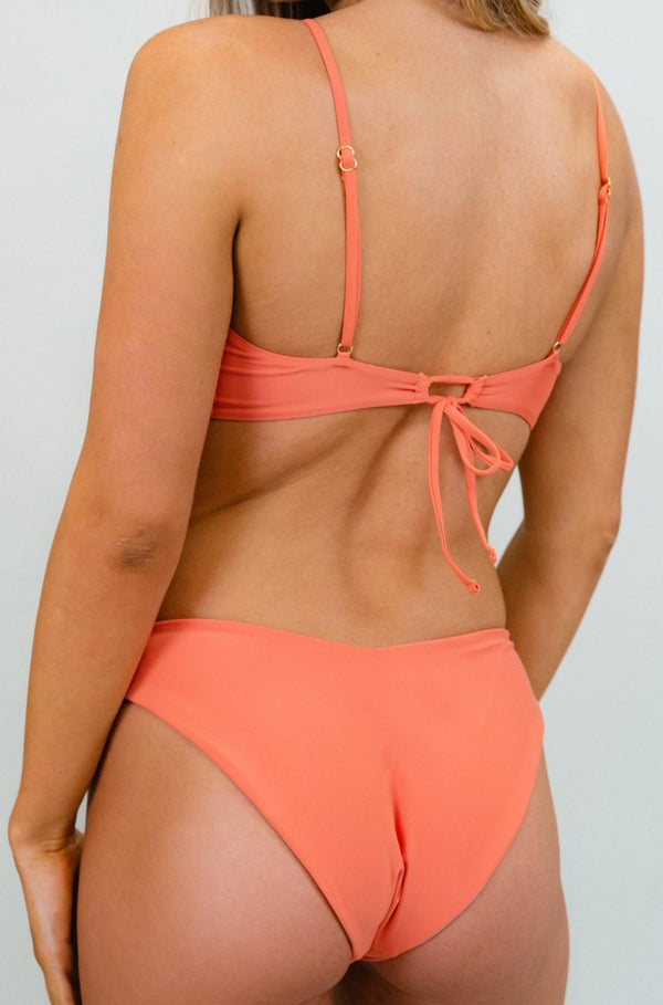The Paige V Cut Bottom in Conch and Coral by Ophelia Love has a moderate/cheeky fit with a slight V dip in the front and back. It is offered in three reversible colorways Conch to Coral, Peri to Indigo, Amanda Talley to Seafoam, and one that is not reversible in Cappuccino. Mix and match this bottom with any top from the spring & summer '23 Ophelia Love collection.