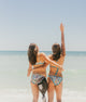 Get ready to make a splash with our Paris Bottom in the fun and playful Just Keep Swimming print. Designed in collaboration with Lulu Gribbin, this classic hipster bottom not only offers a stylish look, but also reverses to a vibrant splash blue for added versatility. Time to dive in!