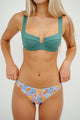 The Paris Reversible Hipster Bottom by Ophelia will become your new favorite! Loved in many different sizes and shapes, this bottom has the perfect amount of coverage. Mix and match with tops from the Ophelia Collection giving a multitude of combinations. This option reverses from ocean blue to a lovely violet solid and palm solid to a fun print.