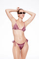 The Praia Bottom in Hibiscus Bandana by Tropic of C features a tie-side design with minimal back coverage, crafted from sustainable eco terry fabric. This cheeky cut offers a flattering silhouette while the soft, textured material provides comfort and durability. Perfect for those who want a playful, confident beach look with an eco-conscious choice.