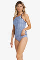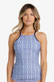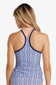 Dive into fun with the Racerback Tankini in Tangier Navy by Helen Jon! This playful piece offers full bust coverage and a smooth, fully lined bodice for comfort and confidence. Removable soft cups add customizable support, while contrasting racerback straps bring a sporty, stylish twist. The built-in shelf bra keeps everything in place, making it perfect for your next beach adventure.