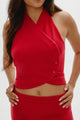 The Ryder Knit Halter Top in Heartstrings by Frankies Bikinis is your new go-to for playful, standout style. With a flirty crossover front and button details along the side, it’s anything but ordinary. The daring open back adds a touch of boldness, making it perfect for pairing with capris or your favorite denim for a modern, polished look that turns heads wherever you go.