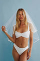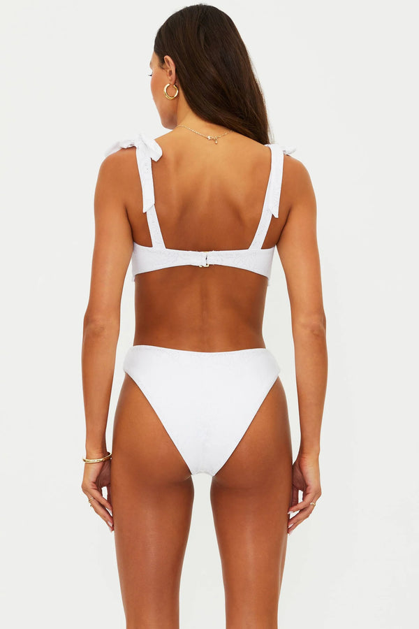 The Taryn Top by Beach Riot showcases a refined pointelle knit construction that offers breathable comfort with subtle texture and visual interest. Delicate double ruffle lace trim frames the neckline and underbust, creating an elegant, feminine silhouette. Adjustable shoulder tie straps allow you to customize the fit to your preferences, while the fully lined interior ensures confidence and coverage. The supportive design flatters the figure without compromising on comfort, making this piece an essential addition to any swimwear collection.